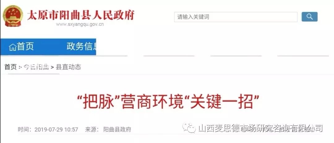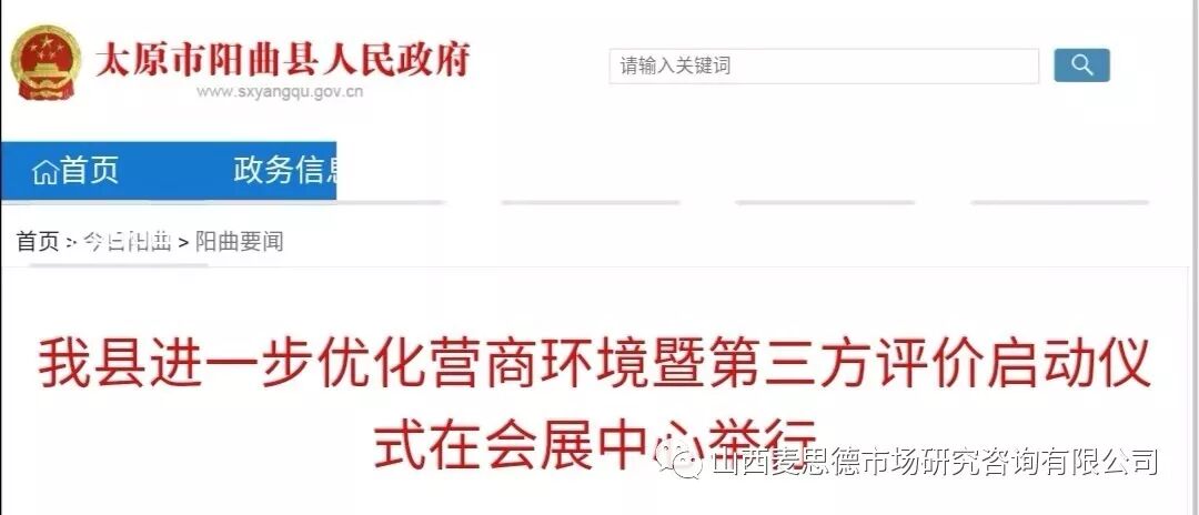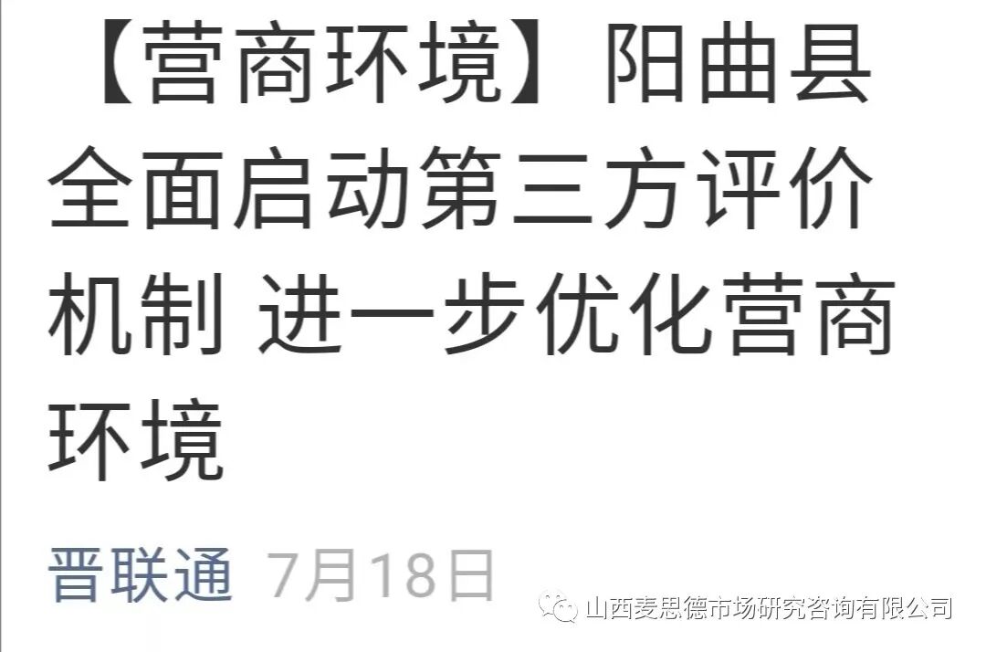 新闻媒体对山西麦思德评估阳曲县营商环境的系列报道发表时间:2019-08-10 13:29 为进一步优化阳曲县营商环境,提高政府部门服务企业的效率,努力营造审批最少、流程最优、体制最顺、机制最活、效率最高、服务最好的“六最”营商环境。山西麦思德市场研究咨询有限公司受阳曲县委、县政府委托,参与了阳曲县2019年进一步优化营商环境第三方评估。县委、县政府给予了高度的重视,评估活动也受到了社会各界的认可,山西经济网、太原市阳曲县人民政府、山西头条、山西晚报、晋联通等门户网站和新闻媒体也对本次评估活动做了详细的系列报道。