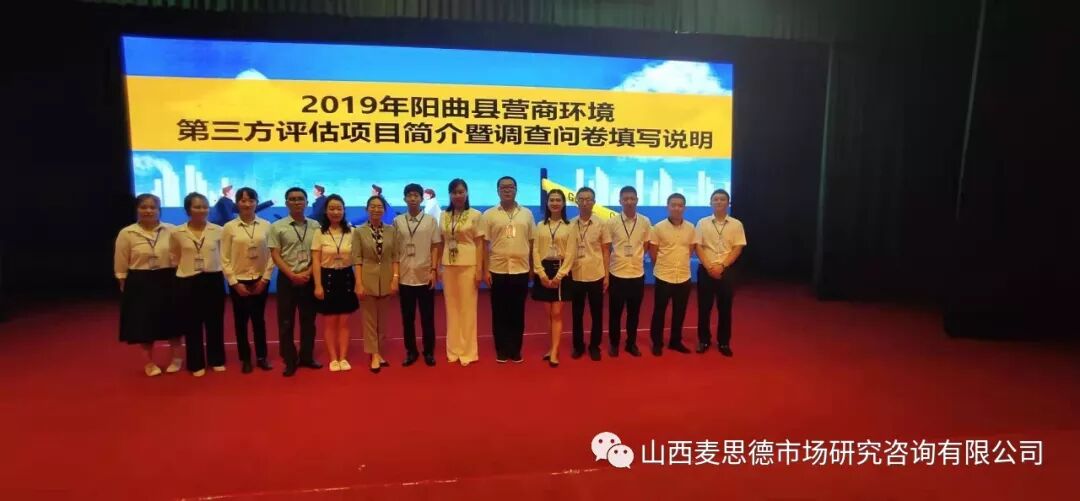 山西麦思德参与阳曲县进一步优化营商环境第三方评估发表时间:2019-07-17 10:01 北京时间2019年7月16日上午,阳曲县委、县政府组织召开阳曲县进一步优化营商环境暨第三方评估启动会,县班子成员、太原市行政审批局局长、县42个政府部门代表、县200多家企业代表、100多名居民代表以及山西麦思德市场研究咨询有限公司参加会议,会议由县委副书记、县长李京京主持。